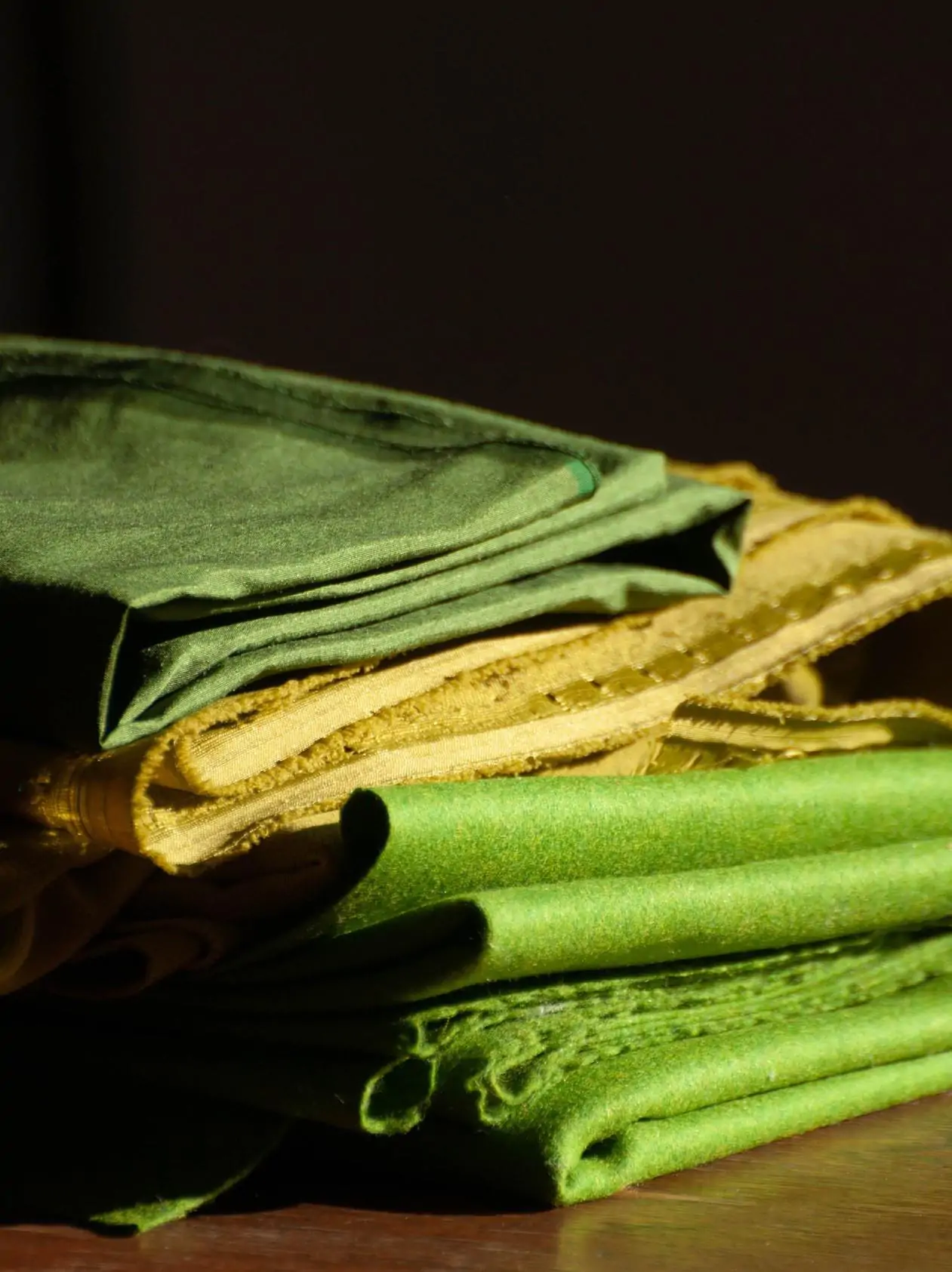 Niezwykle elegancki i szlachetny jedwab typu szantung, dzięki dwukolorowej przędzy faktura powierzchni jedwabiu jest niepowtarzalna. Naturalne pochodzenie powoduje, że mogą istnieć różnice w nasyceniu kolorystycznym, pomiędzy poszczególnymi partiami materiału jak i na powierzchni tkaniny z jednego wałka. Posiada niską odporność na światło słoneczne, w związku z czym zalecamy podszewkowanie jedwabiu, najlepiej materiałem zaciemniającym blackout.