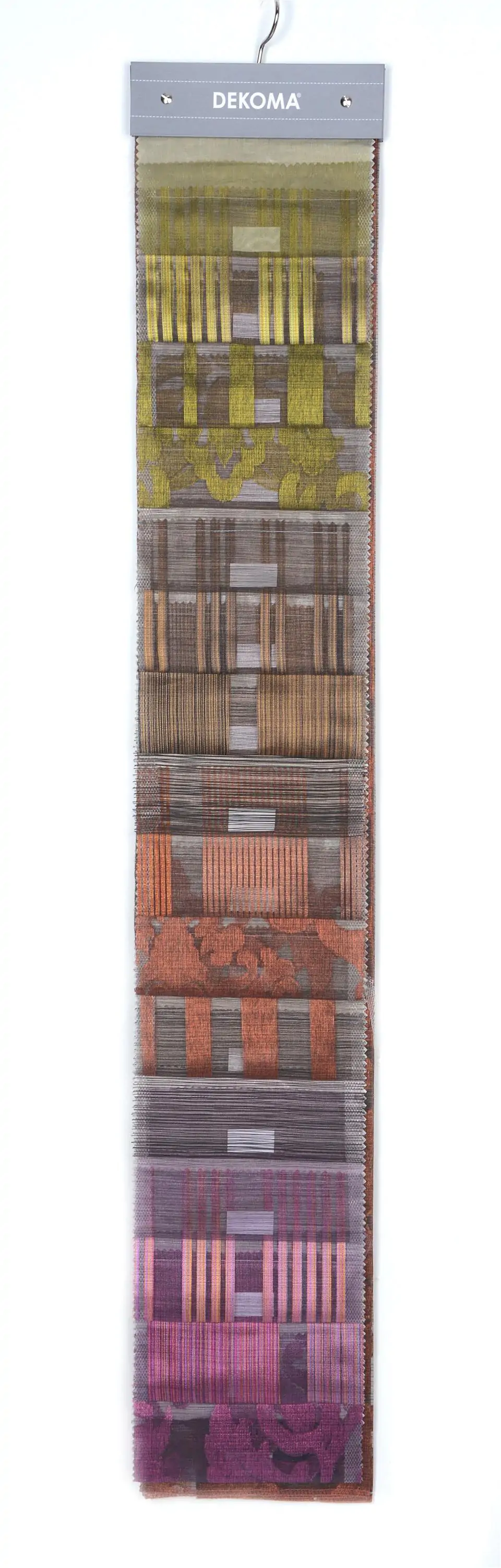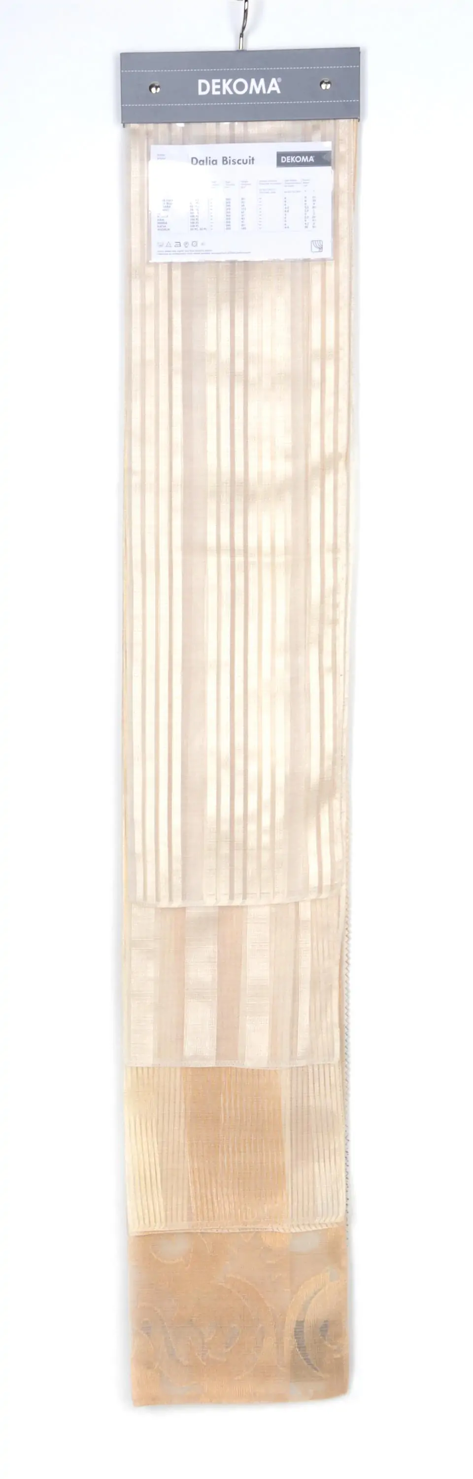 Transparentna i lekka tkanina dekoracyjna w poziome prążki. Ma lekki, elegancki połysk. Doskonała na rolety rzymskie lub zwiewne firany. Ma ekonomiczną wysokość ok.300 cm. Łatwa w konserwacji, do prania w kąpieli wodnej 30oC. Wraz z tkaninami Damiana, Hadley, Hani, Dalia, Henna tworzy kolekcję Dalia. Cała kolekcja dostępna w ciepłej, jesiennej gamie kolorów. Inne kolekcje tkanin transparentnych to Bianco Fresco i Crema Classic.