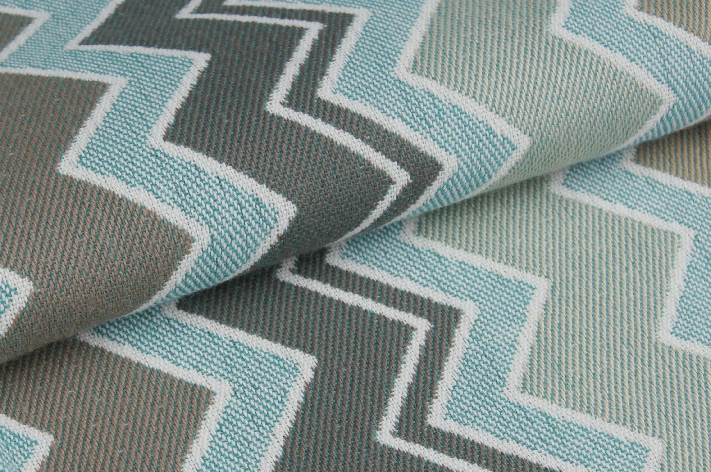 Tkanina w zygzakowy wzór, dostępna w trzech stonowanych zestawach kolorystycznych. Tkaniny UV Pro posiadają ochronę przed promieniami słonecznymi . Zalety techniczne pozwalają na zastosowanie ich na wolnym powietrzu: na meble ogrodowe, basenowe, leżaki, parasole przeciwsłoneczne, żaluzje, markizy, meble jachtowe. Posiadają certyfikat OEKO-TEX® Standard 100 dający gwarancję produktu bezpiecznego w kontakcie z ludzką skórą. Produkt na zamówienie w minimalnej ilości 0,5 metra.