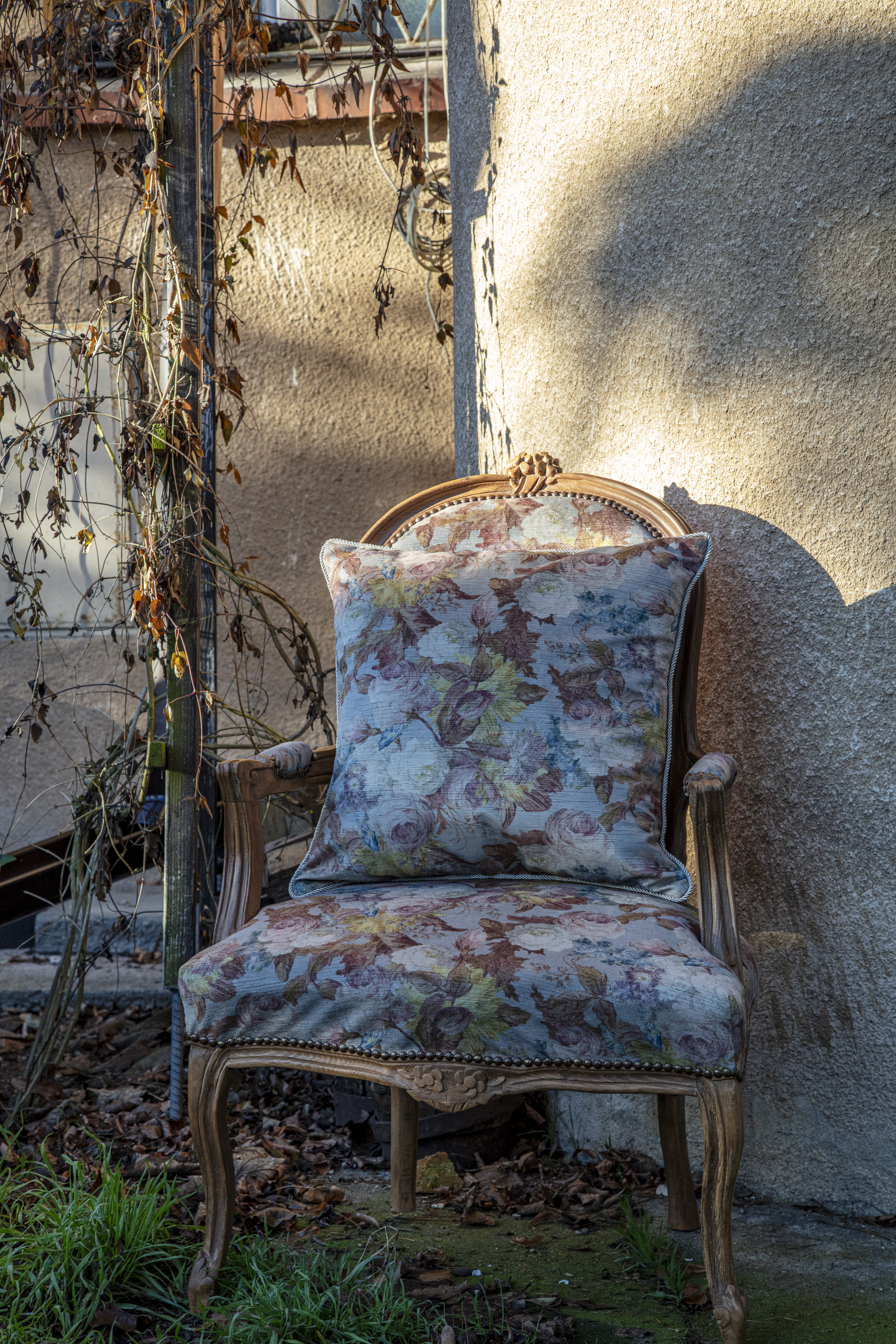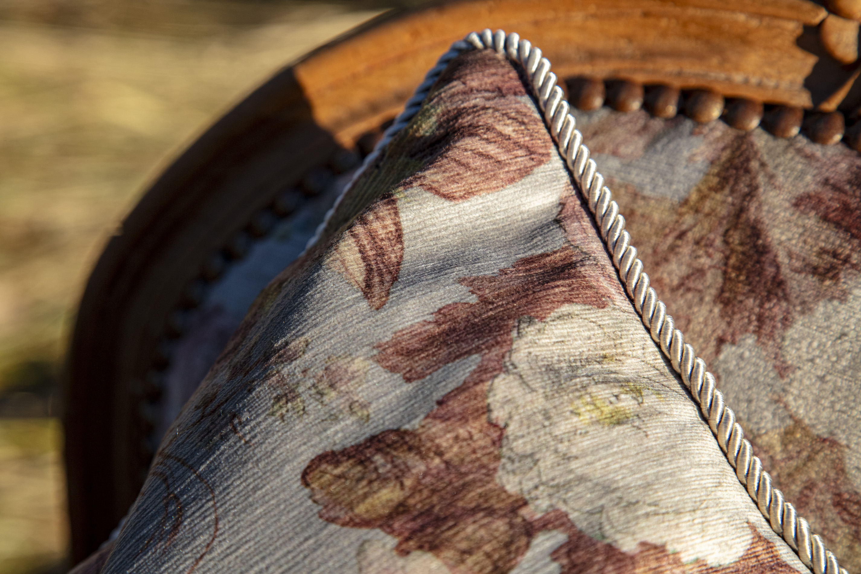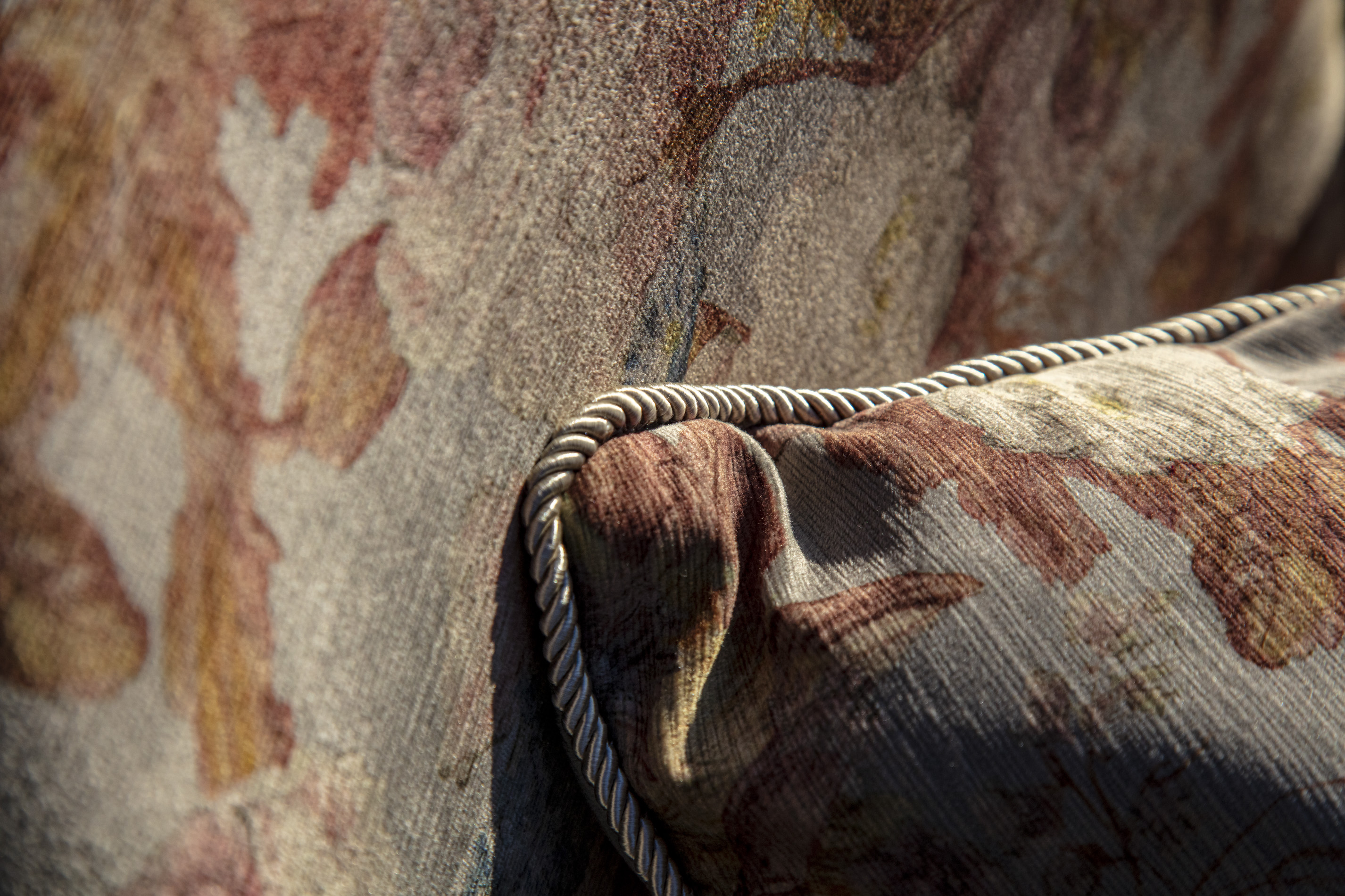 Welurowa dzianina o charakterystycznej prążkowanej fakturze powierzchni, przypominającej drobny sztruks. Drukowana w złożony, kwiatowy wzór, w którym głównym elementem są duże, w pełni rozkwitłe róże. Roseto można stosować do tapicerowania mebli, szycia zasłon czy tekstylnych dodatków, takich jak poduszki, wałki czy narzuty.