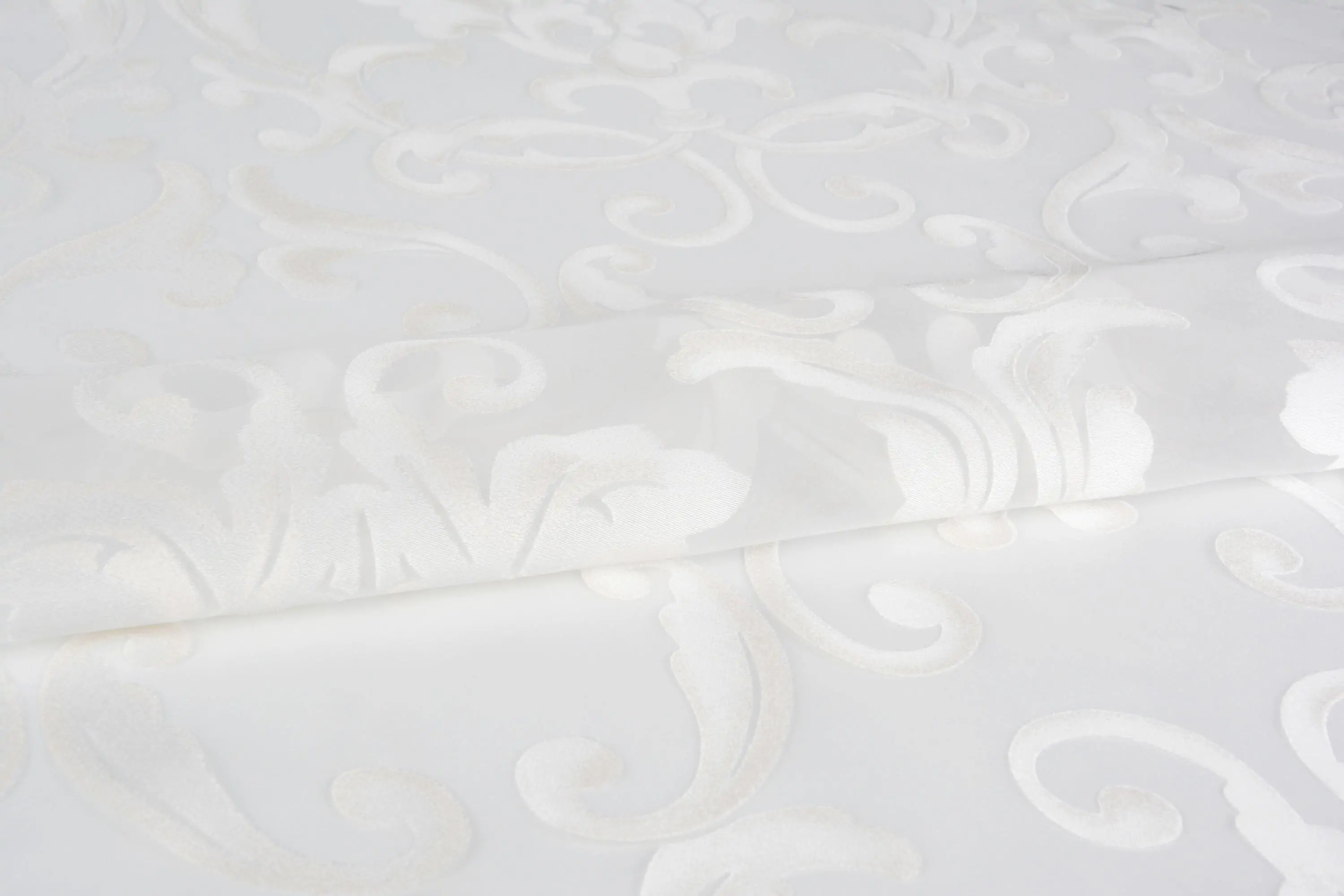 Dwukolorowa tkanina dekoracyjna ze wzorem wici roślinnej na przezroczystym tle. Jej delikatny rysunek ujawnia się, gdy patrzymy na tkaninę pod światło. Wzór mieni się i staje trójwymiarowy. Doskonała propozycja do dekoracji okien. Wysokość 300 cm pozwala na ekonomiczne zużycie materiału. Do użycia na firany, ekrany lub rolety rzymskie. Produkt posiada OEKO-TEX® Standard 100 co gwarantuje iż nie jest szkodliwy dla zdrowia ludzkiego.
