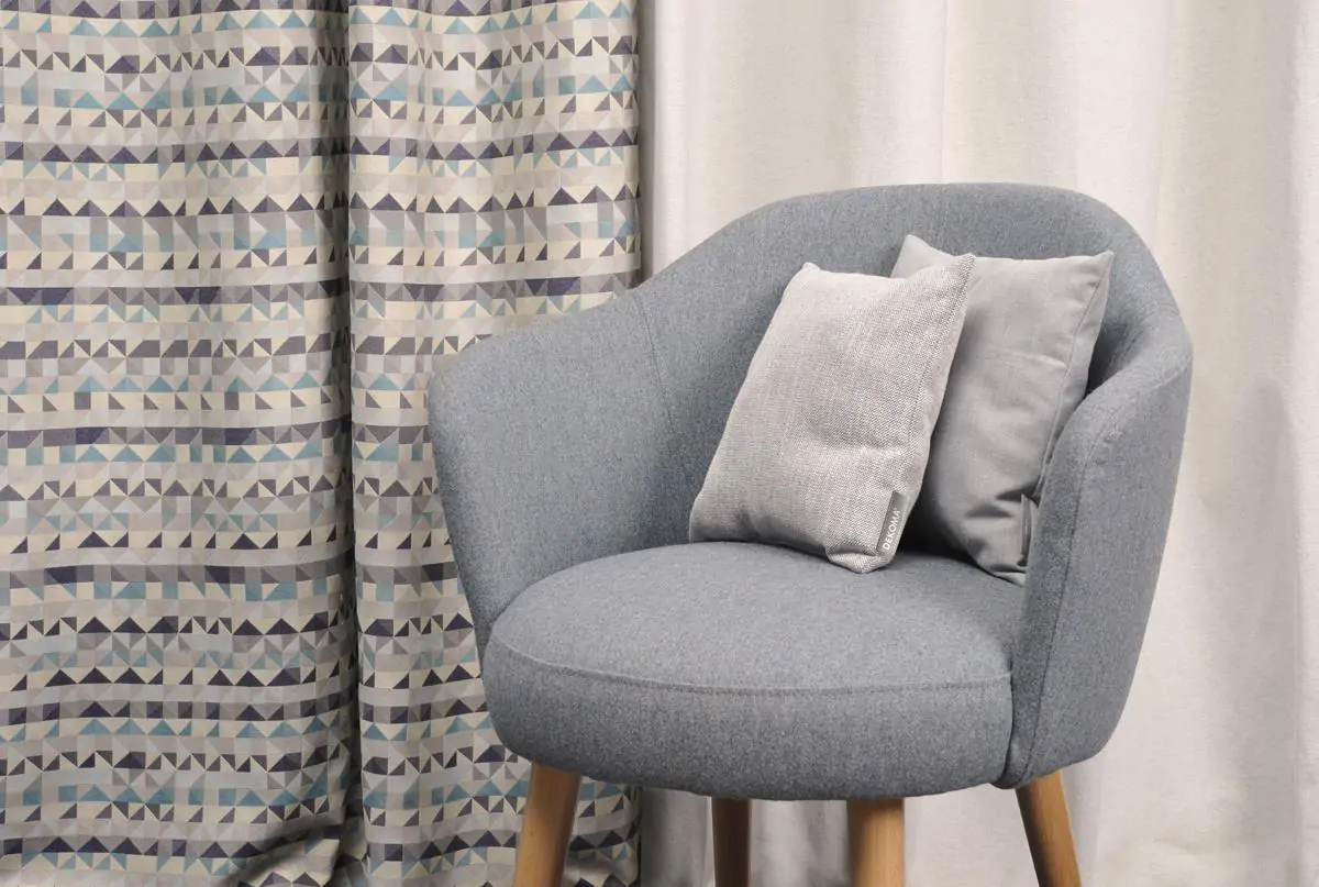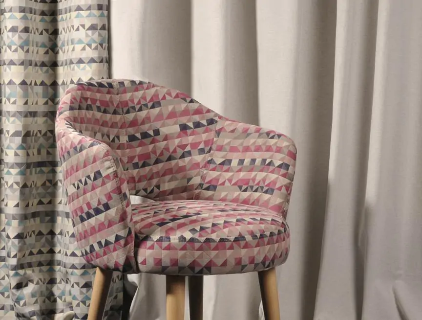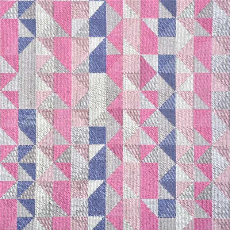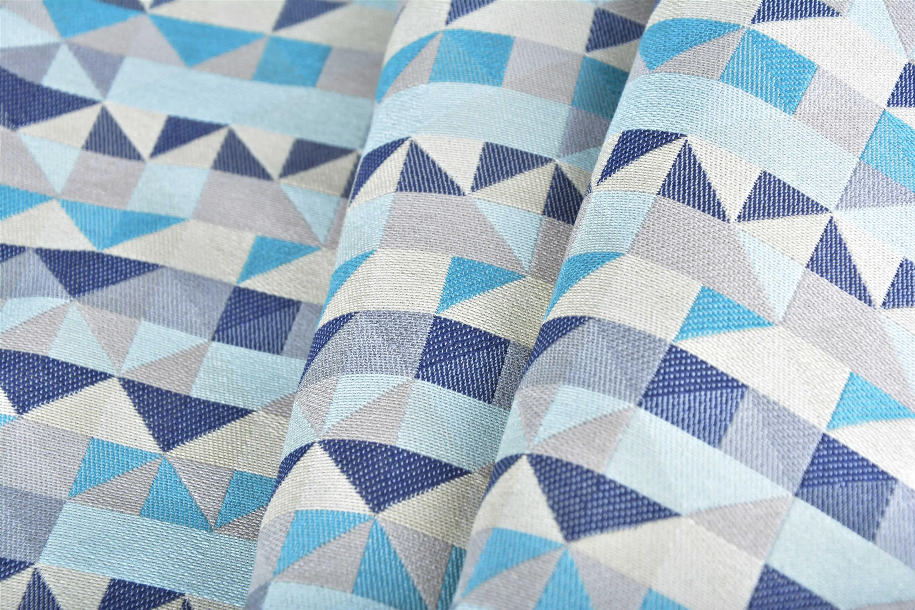Trigon to tkanina z geometrycznym, nowoczesnym wzorem różnokolorowych trójkątów w czterech zestawieniach kolorystycznych gdzie bazą jest szarość w różnych odcieniach, z dodatkiem różu i zieleni, turkusu lub granatu. Produkt ze względu na parametry techniczne polecany jest przede wszystkim do wnętrz prywatnych. Jeśli planujecie Państwo ozdobne stębnowanie zewnętrzne, ze względu na specyficzną powierzchnię tkaniny sugerujemy, użycie krótkiego ściegu i ewentualne wykonanie testów, czy osiągnięty efekt jest dla Państwa zadowalający.